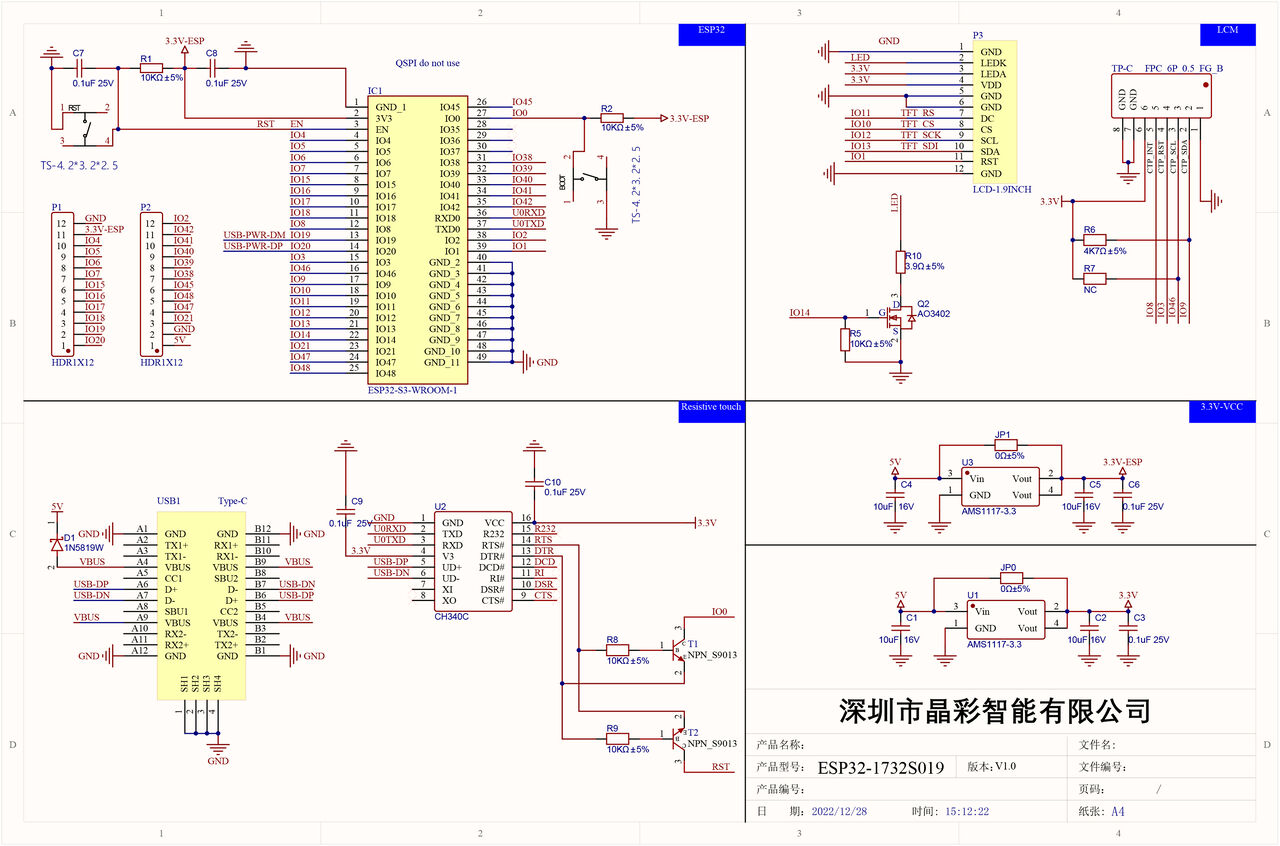 還有美中不足的是 LCD 的熒幕控制引腳並不是使用 ESP32-S3 的 硬件SPI